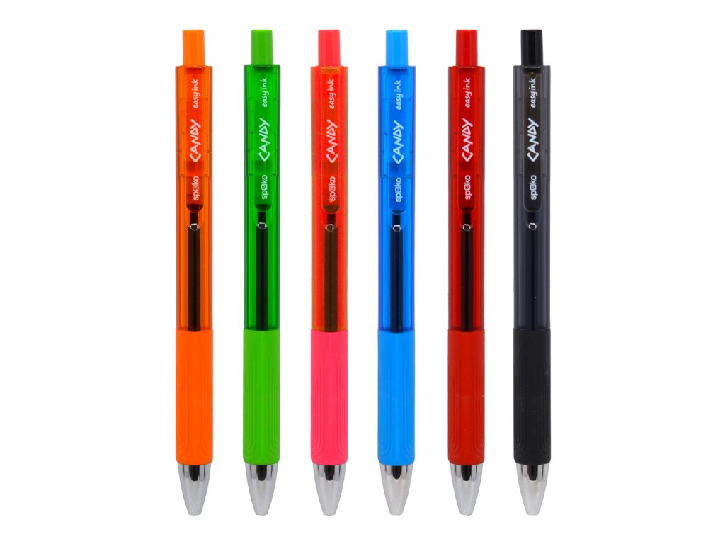 Stiskací kuličkové pero řady CANDY s příjemným trojhranným úchopem pro komfortní držení a psaní. Tělo má atraktivní barevný design v kombinaci se stříbrnou špičkou. Tištěné logo na klipu. Modrá náplň Easy Ink - inkoust s nízkou viskozitou pro pohodlnější a plynulejší psaní.