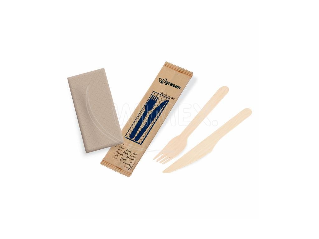 Příborová sada (dřevěná FSC 100%) nůž-vidlička+ubrousek