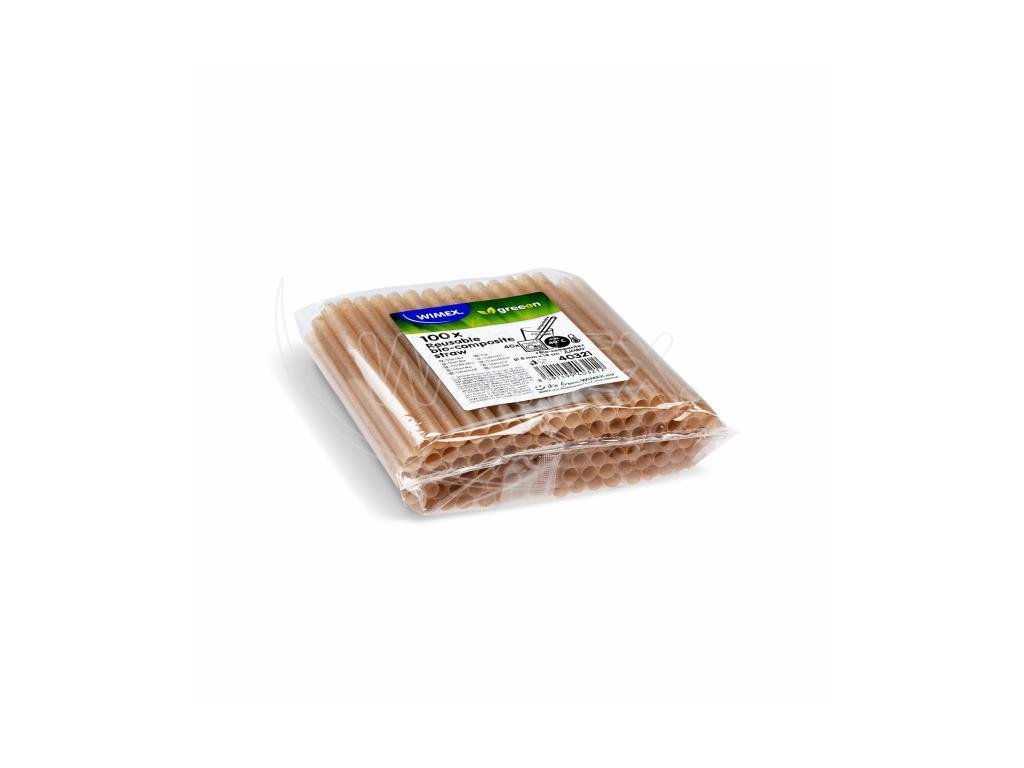 Slámka (bio-kompozit) přírodní hnědá `JUMBO` Ø8mm x 14cm [100 ks]